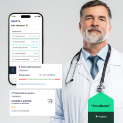 - Accedi alle informazioni più importanti per la tua salute: assetto genetico, analisi degli Aminoacidi, storia anamnestica e un team di professionisti a tua disposizione per farti monitorare e migliorare la tua salute nel tempo!